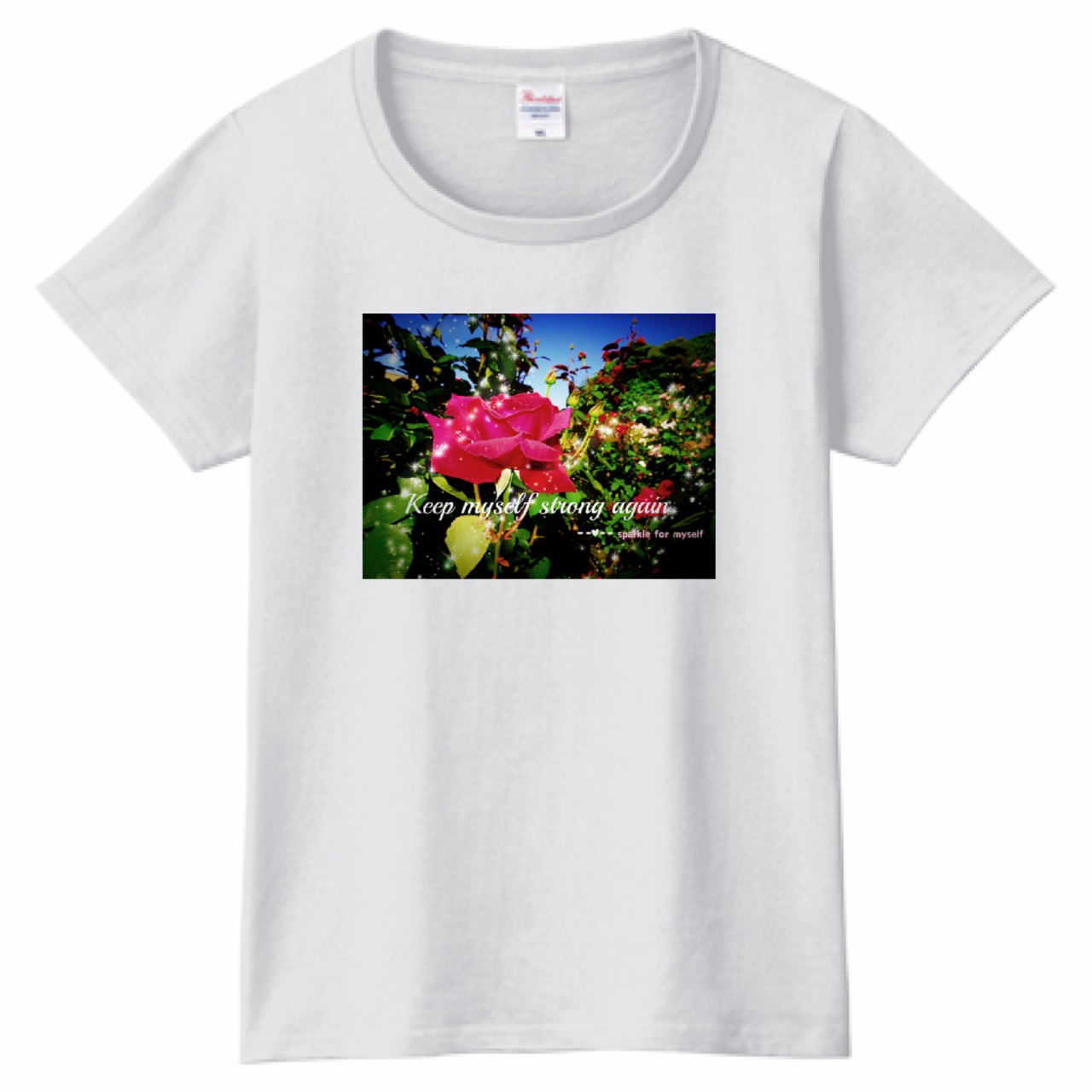 [Dark]♠キラキラRoseTシャツ☁Ladies[Printstar]✵੯•`໒♥White