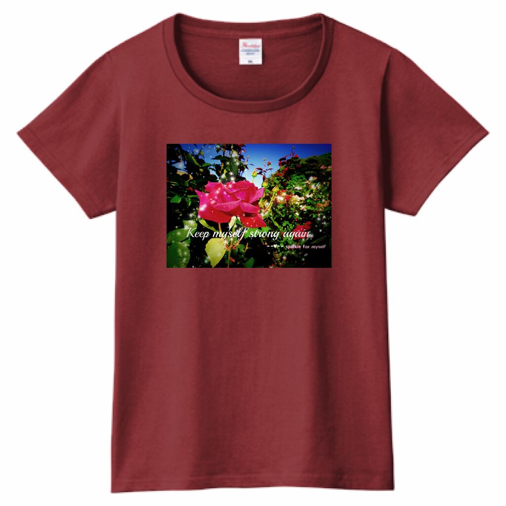 [Dark]♠キラキラRoseTシャツ☁Ladies[Printstar]✵੯•`໒♥Burgundy