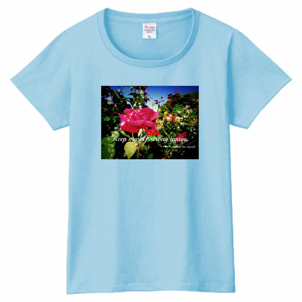 [Dark]♠キラキラRoseTシャツ☁Ladies[Printstar]✵੯•`໒♥Light blue