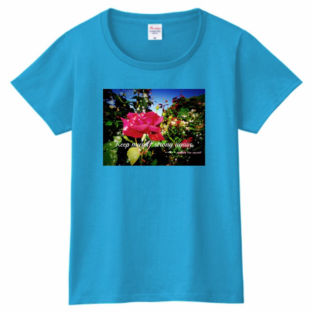 [Dark]♠キラキラRoseTシャツ☁Ladies[Printstar]✵੯•`໒♥Turquoise