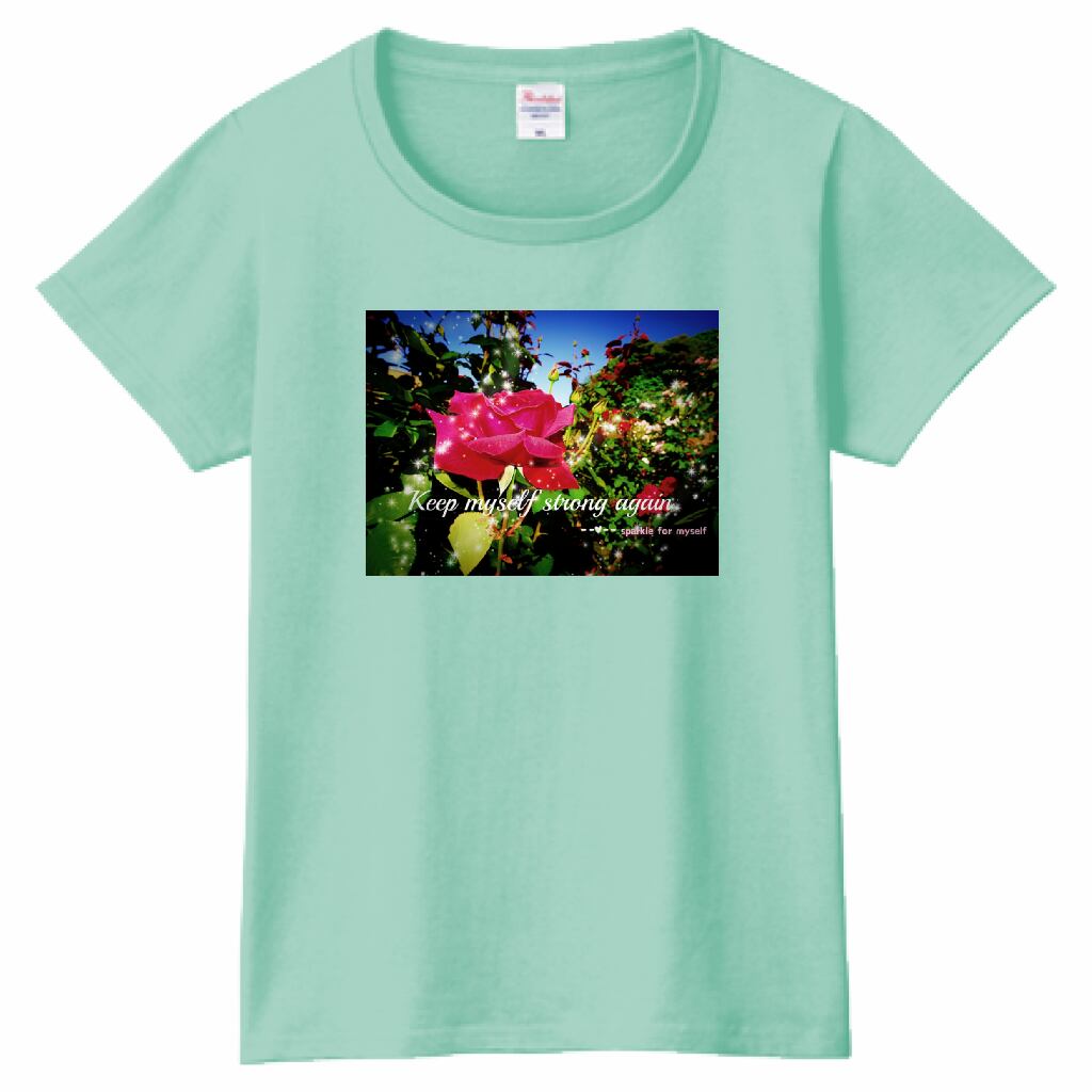 [Dark]♠キラキラRoseTシャツ☁Ladies[Printstar]✵੯•`໒♥Ice green