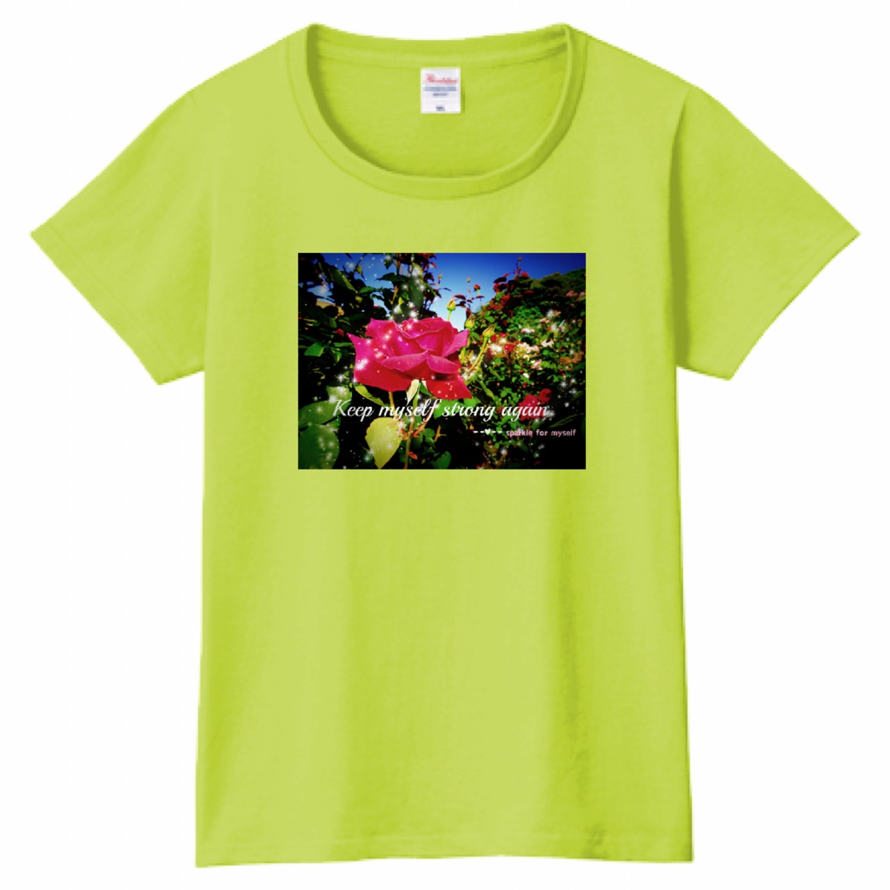 [Dark]♠キラキラRoseTシャツ☁Ladies[Printstar]✵੯•`໒♥Light green