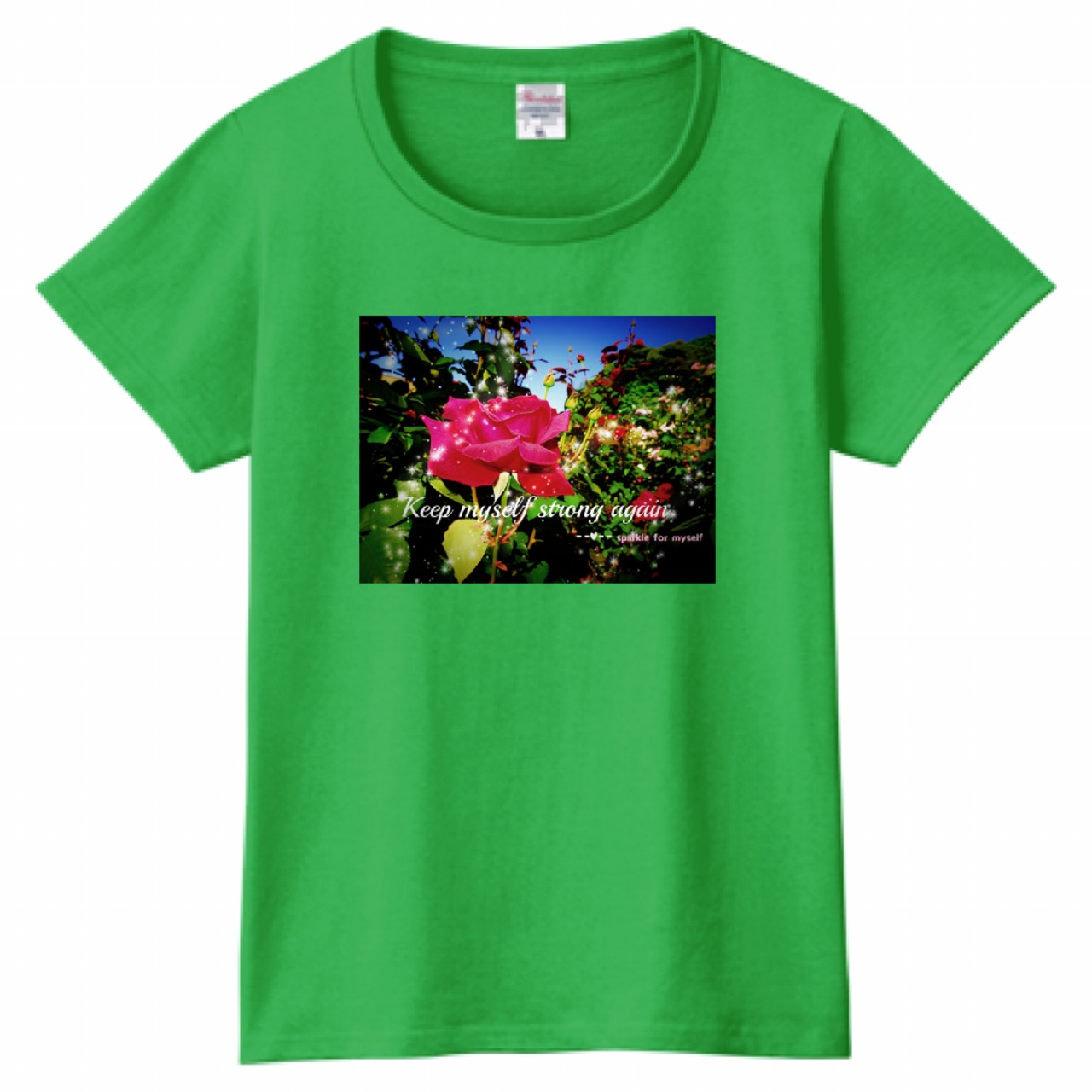 [Dark]♠キラキラRoseTシャツ☁Ladies[Printstar]✵੯•`໒♥Bright green
