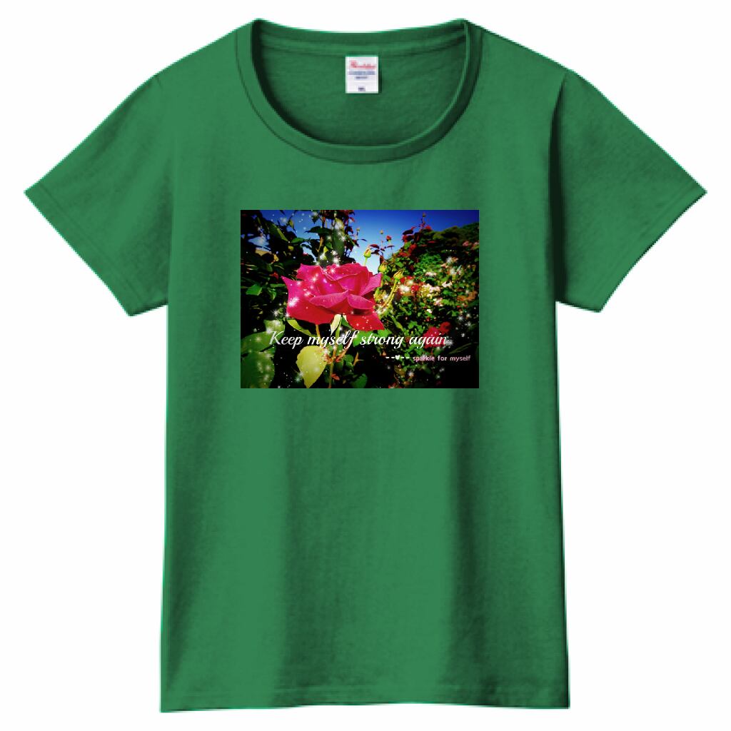 [Dark]♠キラキラRoseTシャツ☁Ladies[Printstar]✵੯•`໒♥Green