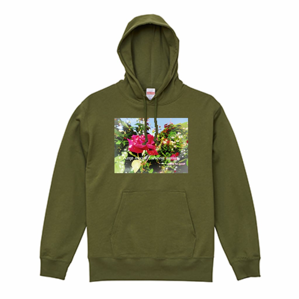 [薄手]スウェットプルオーバーパーカー☁キラキラRose✵੯•`໒♥Light olive