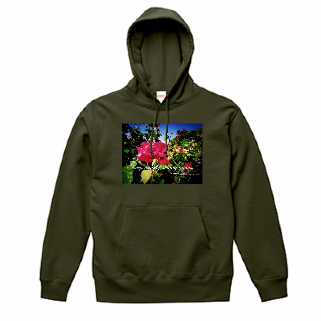 [薄手]スウェットプルオーバーパーカー☁[Dark]♠キラキラRose✵੯•`໒♥Olive