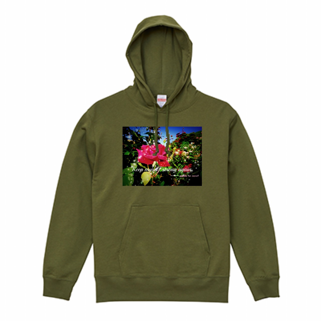 [薄手]スウェットプルオーバーパーカー☁[Dark]♠キラキラRose✵੯•`໒♥Light olive