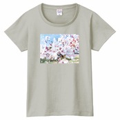 キラキラCherry blossomTシャツ☁ヘビーウェイトTシャツ☁Ladies〔Printstar✵੯•`໒♥Silver gray