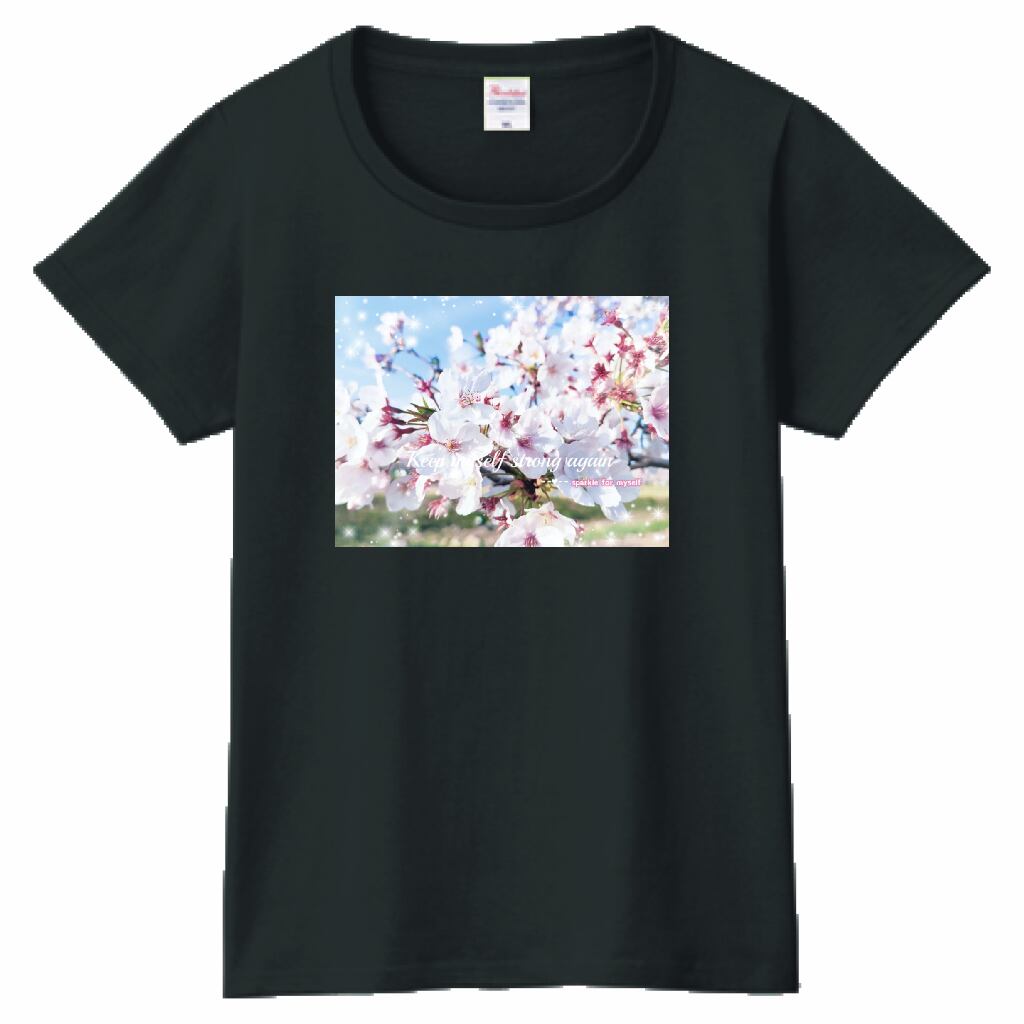キラキラCherry blossomTシャツ☁ヘビーウェイトTシャツ☁Ladies〔Printstar✵੯•`໒♥Smork black