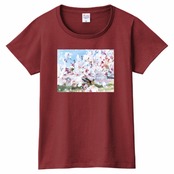 キラキラCherry blossomTシャツ☁ヘビーウェイトTシャツ☁Ladies〔Printstar✵੯•`໒♥Burgundy