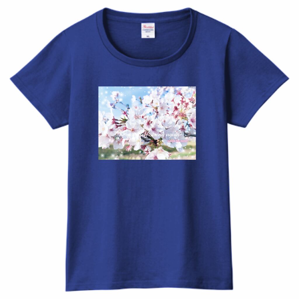 キラキラCherry blossomTシャツ☁ヘビーウェイトTシャツ☁Ladies〔Printstar✵੯•`໒♥Japan blue