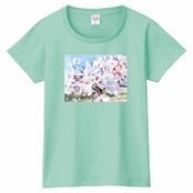 キラキラCherry blossomTシャツ☁ヘビーウェイトTシャツ☁Ladies〔Printstar✵੯•`໒♥Ice green