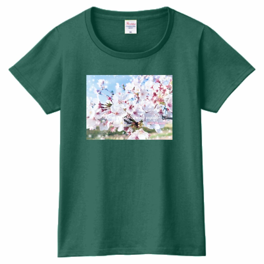 キラキラCherry blossomTシャツ☁ヘビーウェイトTシャツ☁Ladies〔Printstar✵੯•`໒♥Ivy green