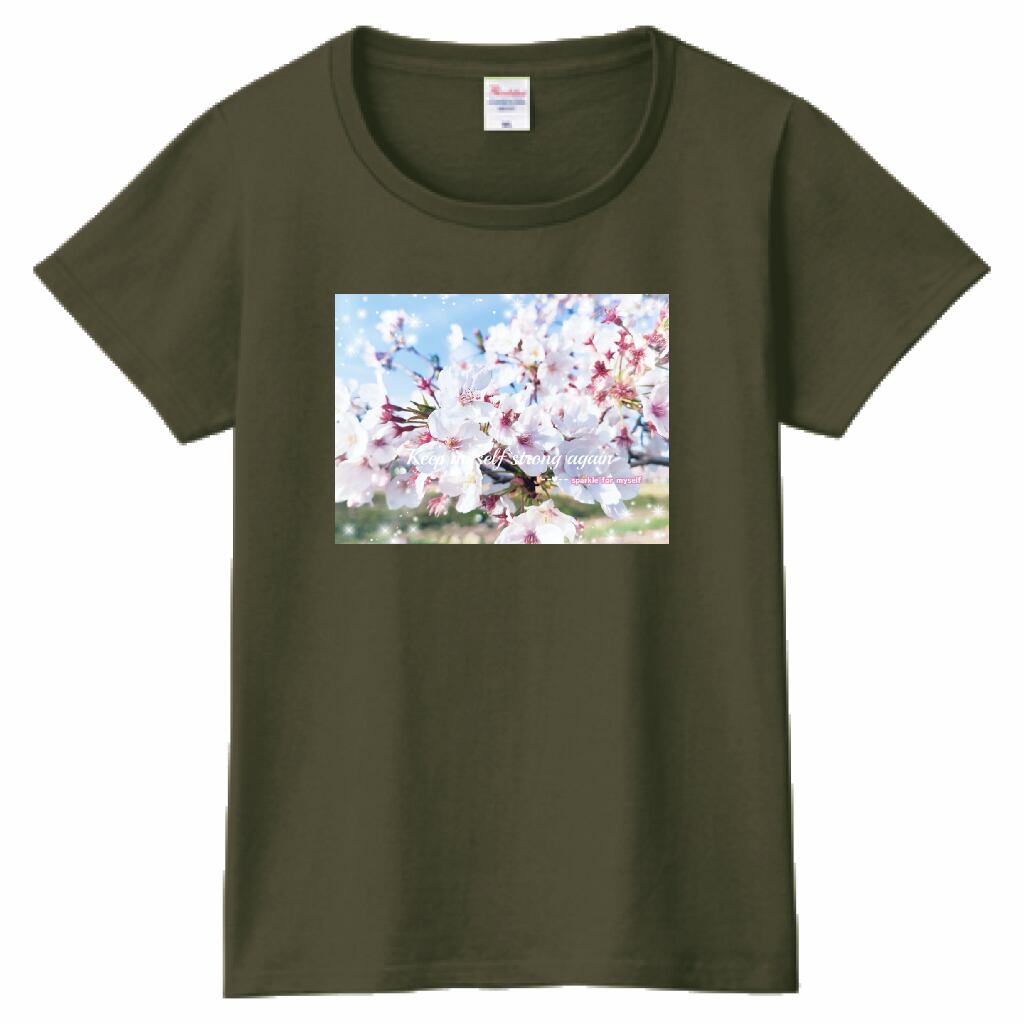 キラキラCherry blossomTシャツ☁ヘビーウェイトTシャツ☁Ladies〔Printstar✵੯•`໒♥Army green