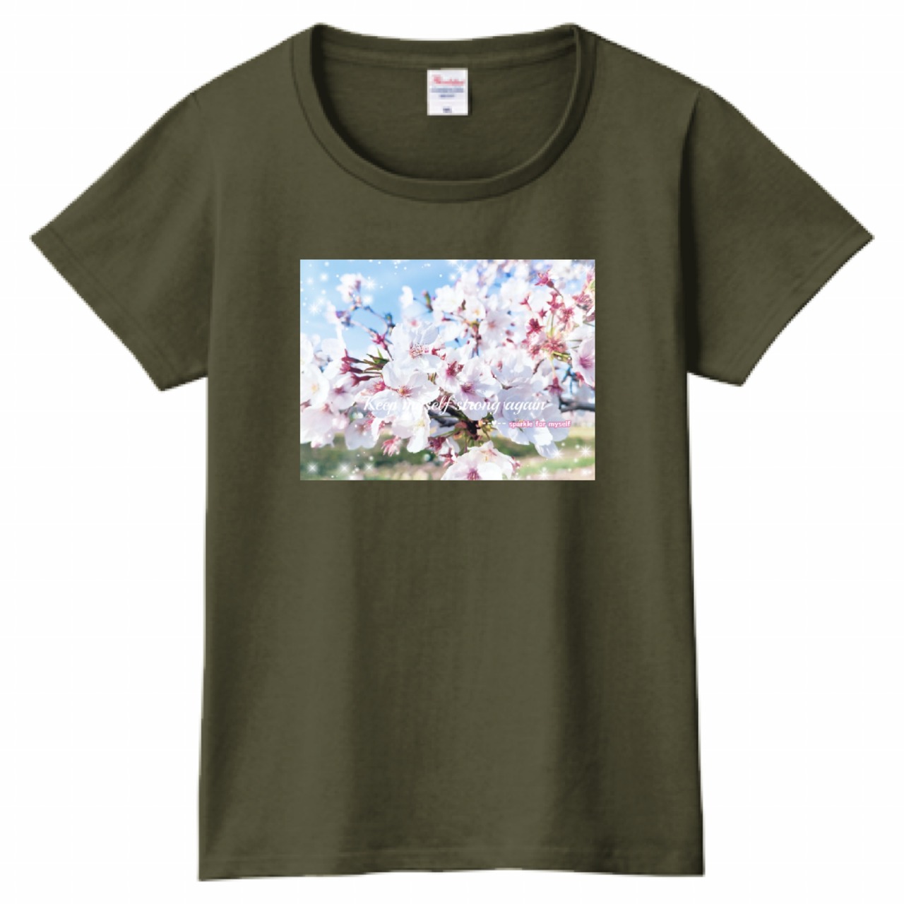 キラキラCherry blossomTシャツ☁ヘビーウェイトTシャツ☁Ladies〔Printstar✵੯•`໒♥Olive