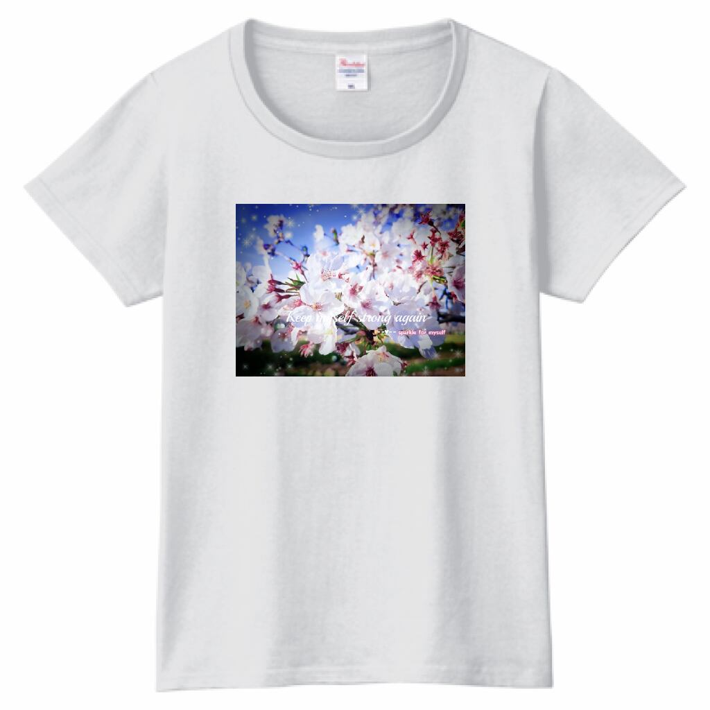 [Dark]♠キラキラCherry blossomTシャツ☁ヘビーウェイトTシャツ☁Ladies〔Printstar✵੯•`໒♥Ash