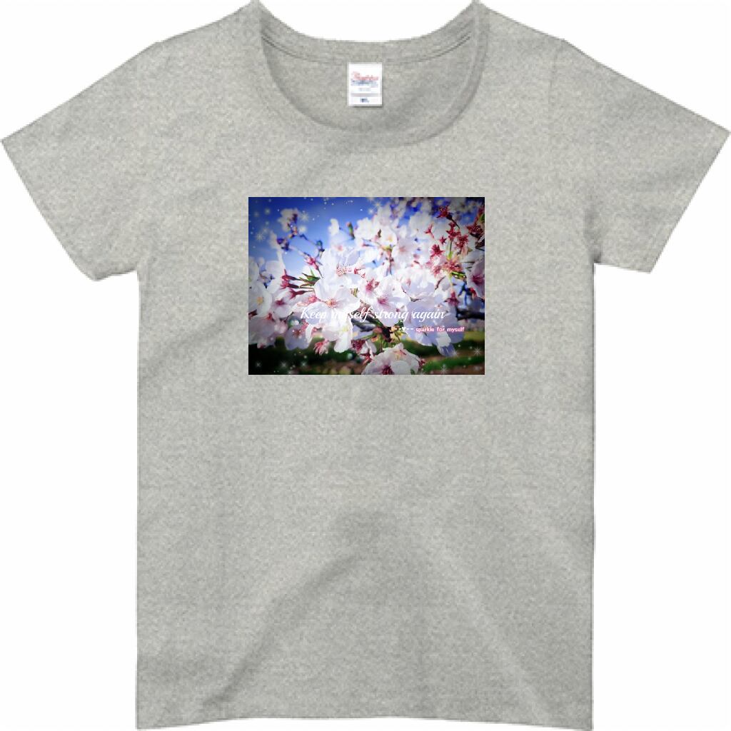 [Dark]♠キラキラCherry blossomTシャツ☁ヘビーウェイトTシャツ☁Ladies〔Printstar✵੯•`໒♥Oat meal