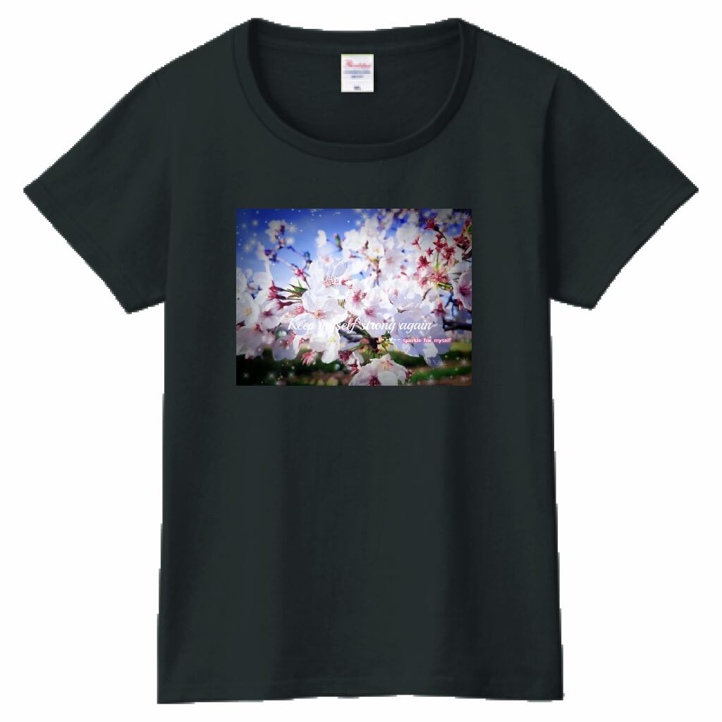 [Dark]♠キラキラCherry blossomTシャツ☁ヘビーウェイトTシャツ☁Ladies〔Printstar✵੯•`໒♥Smork black
