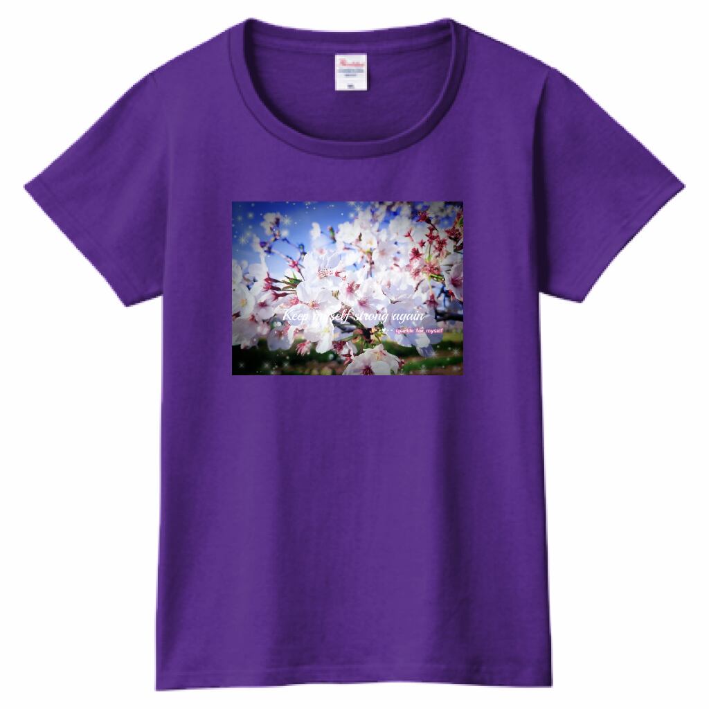 [Dark]♠キラキラCherry blossomTシャツ☁ヘビーウェイトTシャツ☁Ladies〔Printstar✵੯•`໒♥Purple