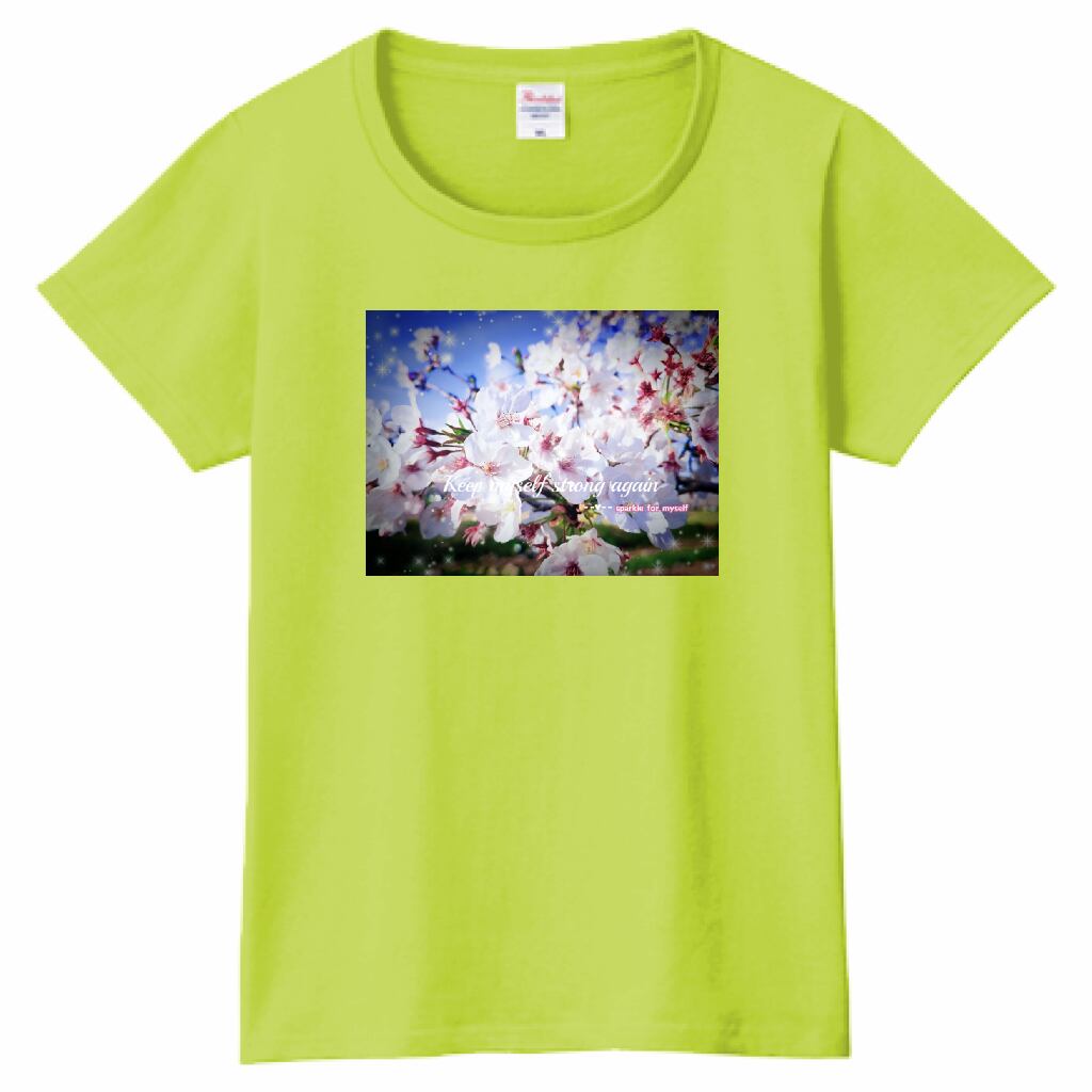 [Dark]♠キラキラCherry blossomTシャツ☁ヘビーウェイトTシャツ☁Ladies〔Printstar✵੯•`໒♥Light green