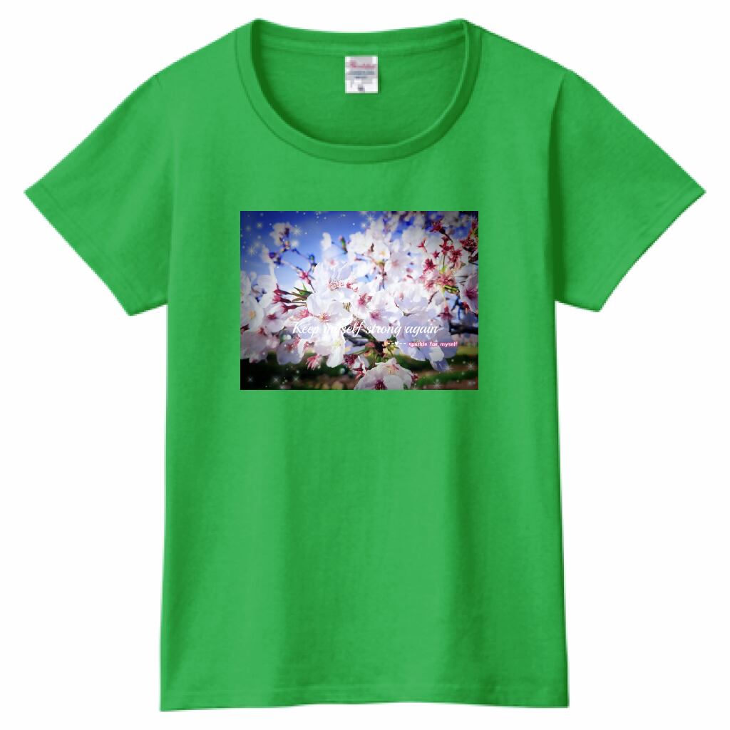 [Dark]♠キラキラCherry blossomTシャツ☁ヘビーウェイトTシャツ☁Ladies〔Printstar✵੯•`໒♥Bright green