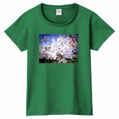 [Dark]♠キラキラCherry blossomTシャツ☁ヘビーウェイトTシャツ☁Ladies〔Printstar✵੯•`໒♥Green