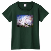 [Dark]♠キラキラCherry blossomTシャツ☁ヘビーウェイトTシャツ☁Ladies〔Printstar✵੯•`໒♥Forest