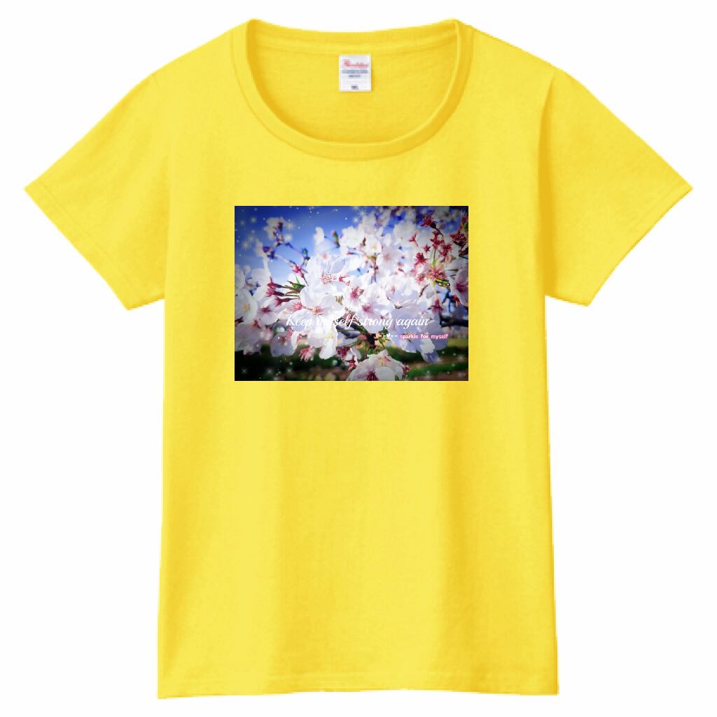 [Dark]♠キラキラCherry blossomTシャツ☁ヘビーウェイトTシャツ☁Ladies〔Printstar✵੯•`໒♥Yellow