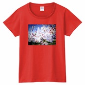 [Dark]♠キラキラCherry blossomTシャツ☁ヘビーウェイトTシャツ☁Ladies〔Printstar✵੯•`໒♥Italian red