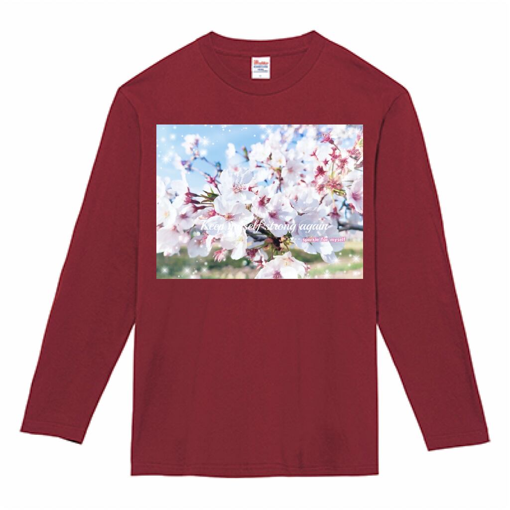 キラキラCherry blossom♥ヘビーウェイト長袖Tシャツ✵੯•`໒♥Burgundy