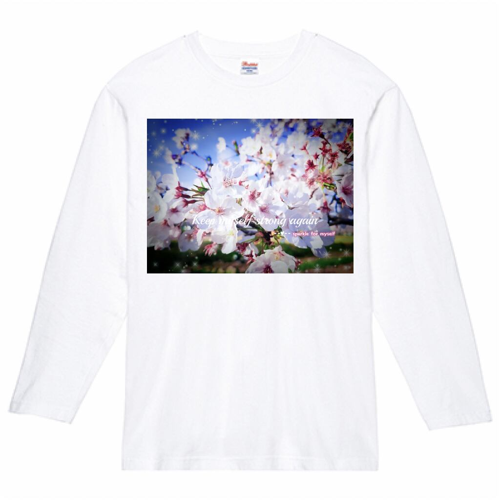 [Dark]♠キラキラCherry blossom♥ヘビーウェイト長袖Tシャツ✵੯•`໒♥White