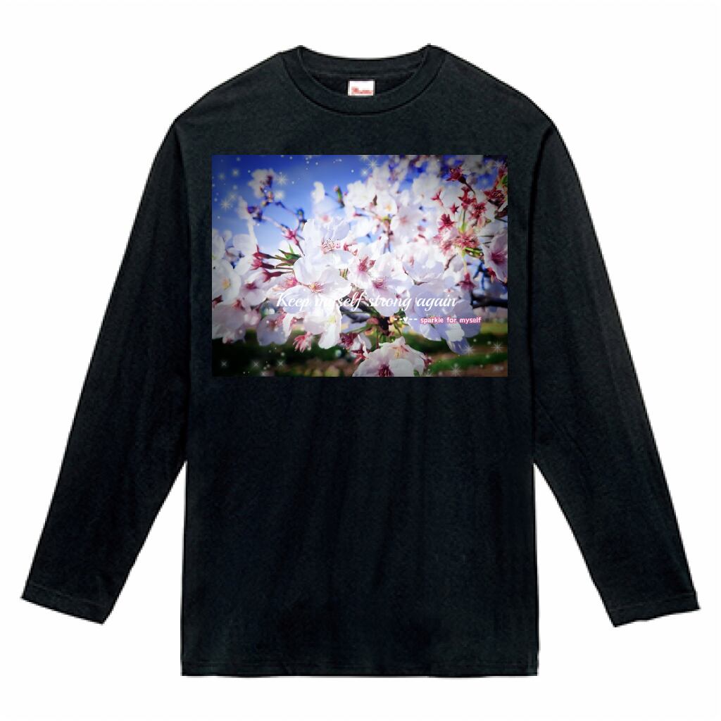 [Dark]♠キラキラCherry blossom♥ヘビーウェイト長袖Tシャツ✵੯•`໒♥Black