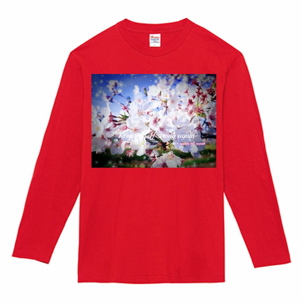 [Dark]♠キラキラCherry blossom♥ヘビーウェイト長袖Tシャツ✵੯•`໒♥Red