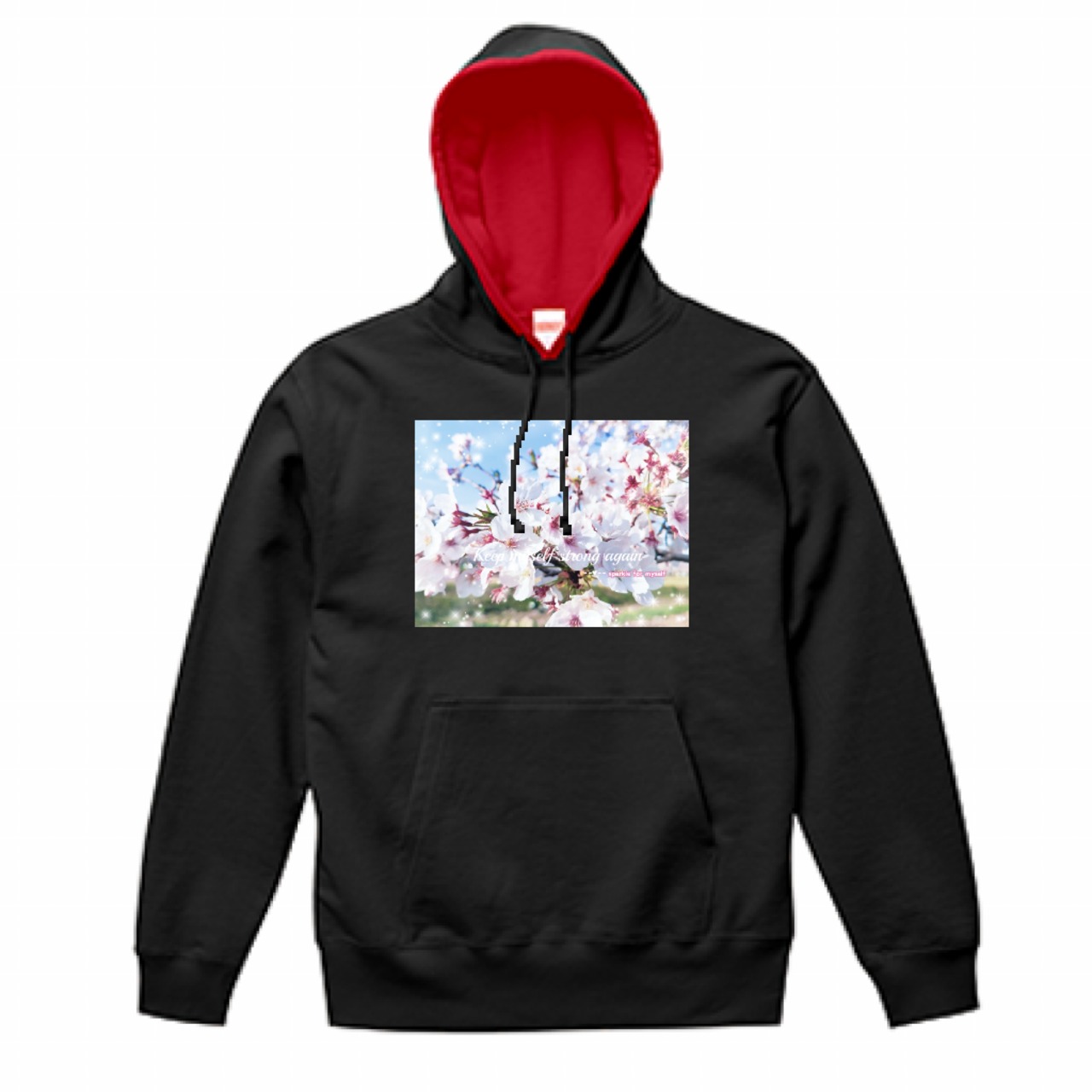 [薄手]スウェットプルオーバーパーカー☁キラキラCherry blossom✵੯•`໒♥Black × Red