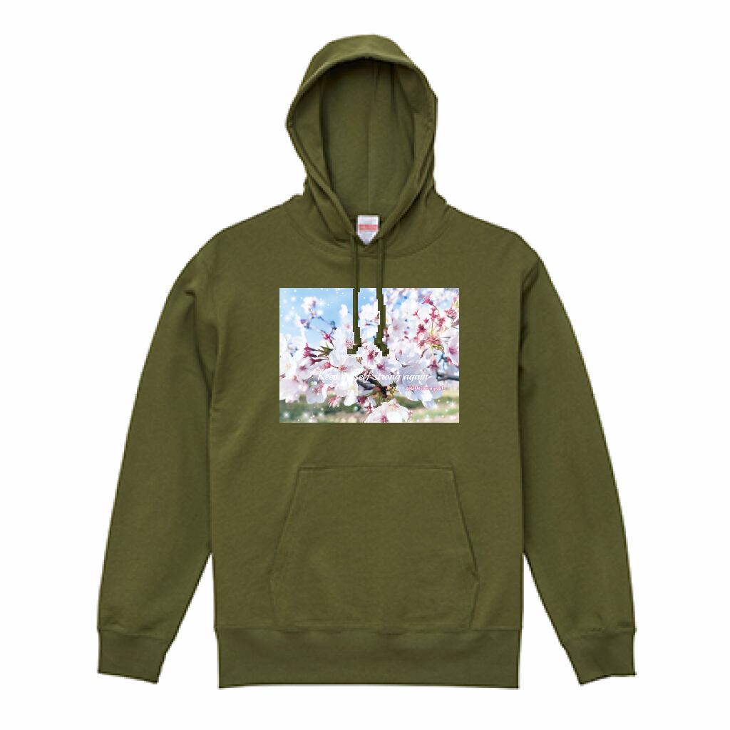 [薄手]スウェットプルオーバーパーカー☁キラキラCherry blossom✵੯•`໒♥Light olive