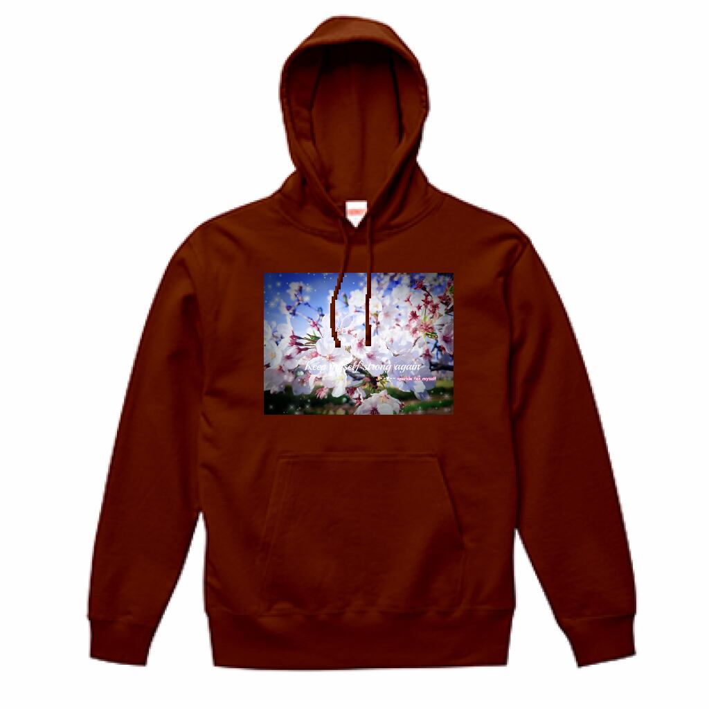 [Dark]♠[薄手]スウェットプルオーバーパーカー☁キラキラCherry blossom✵੯•`໒♥Burgundy