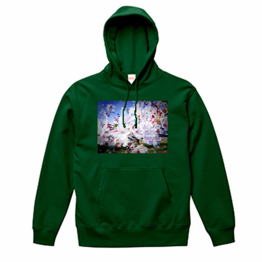[Dark]♠[薄手]スウェットプルオーバーパーカー☁キラキラCherry blossom✵੯•`໒♥Ivy green