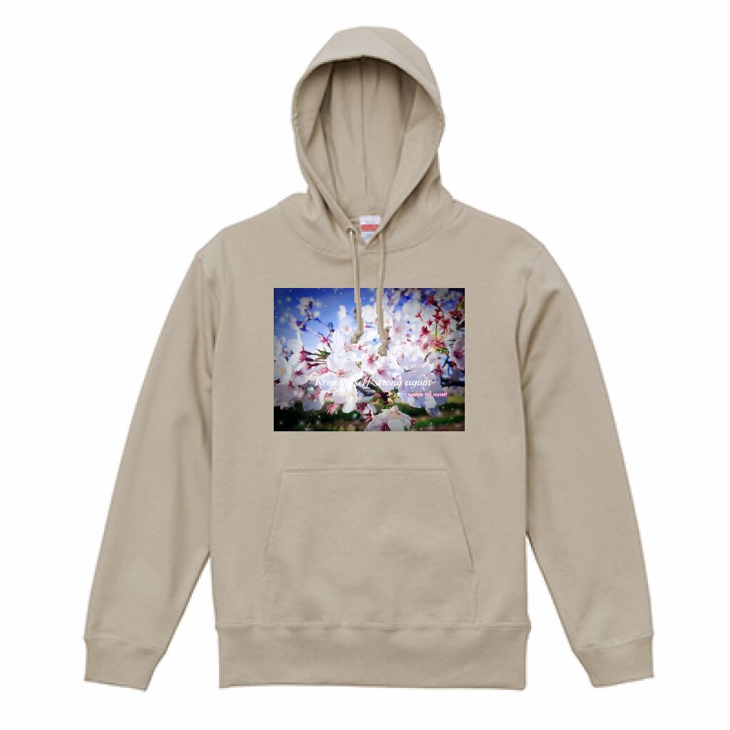 [Dark]♠[薄手]スウェットプルオーバーパーカー☁キラキラCherry blossom✵੯•`໒♥Sand beige