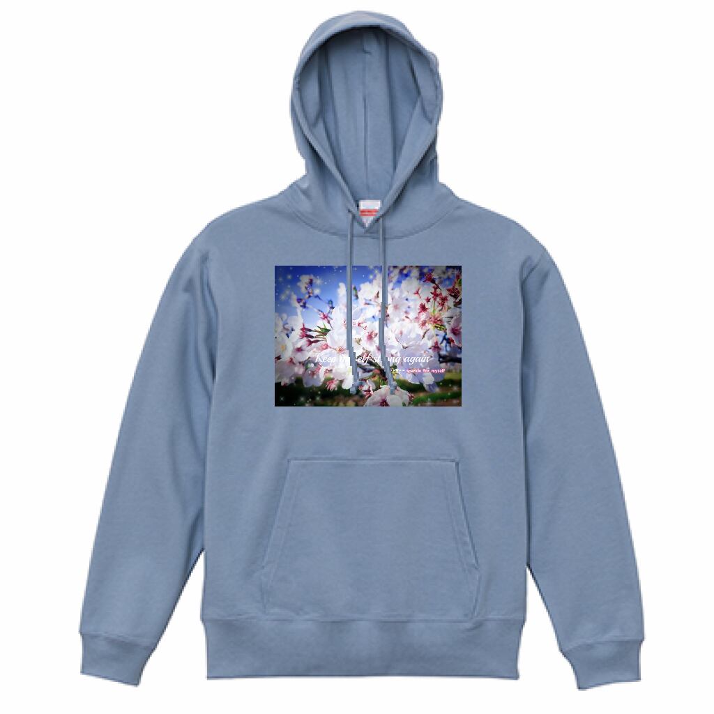 [Dark]♠[薄手]スウェットプルオーバーパーカー☁キラキラCherry blossom✵੯•`໒♥Acid blue
