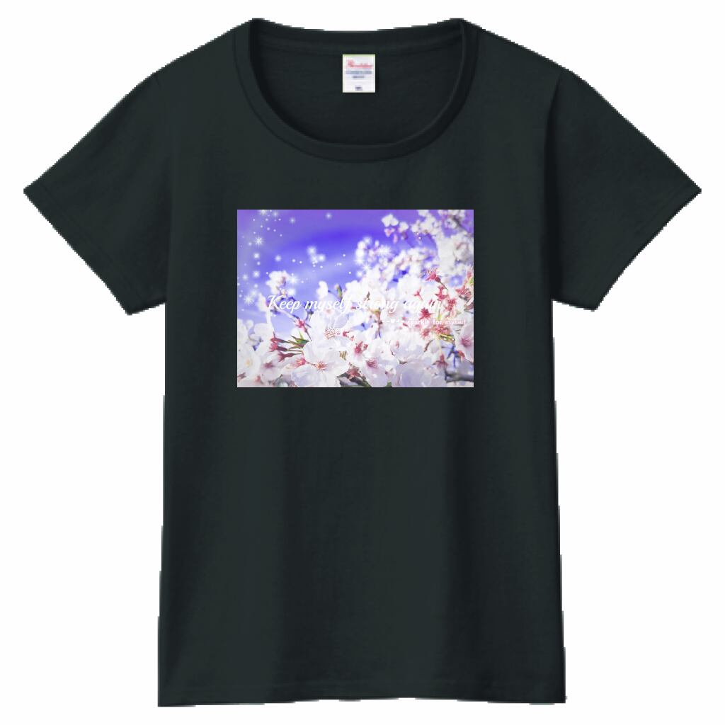 キラキラBeautiful Cherry blossom✵੯•`໒♥ヘビーウェイトTシャツ☁Ladies〔Printstar✵੯•`໒♥Smork black
