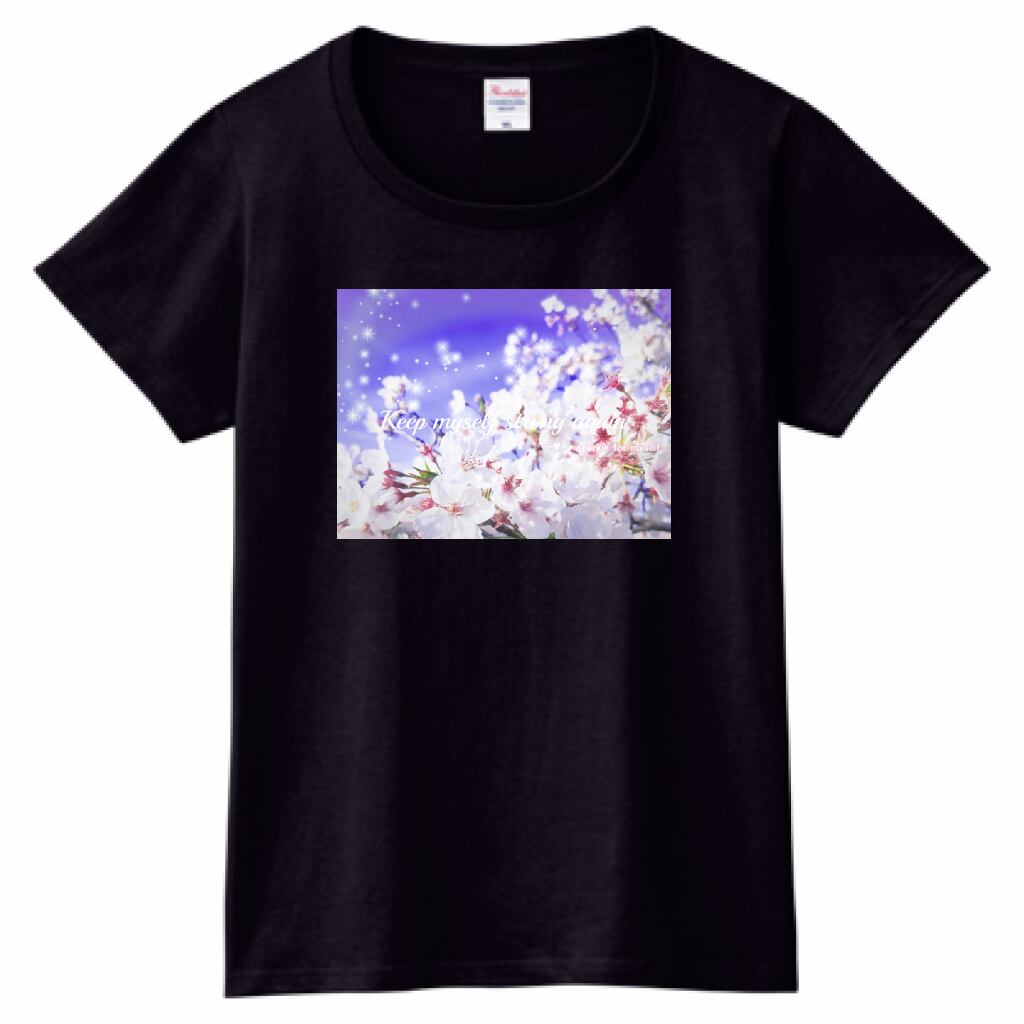キラキラBeautiful Cherry blossom✵੯•`໒♥ヘビーウェイトTシャツ☁Ladies〔Printstar✵੯•`໒♥Black