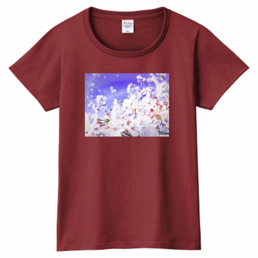 キラキラBeautiful Cherry blossom✵੯•`໒♥ヘビーウェイトTシャツ☁Ladies〔Printstar✵੯•`໒♥Burgundy
