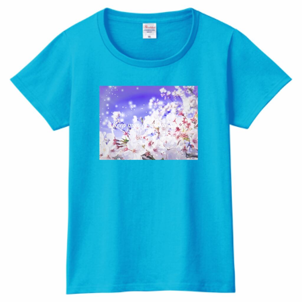 キラキラBeautiful Cherry blossom✵੯•`໒♥ヘビーウェイトTシャツ☁Ladies〔Printstar✵੯•`໒♥Sea blue