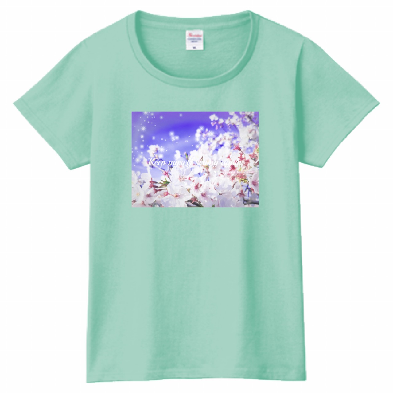キラキラBeautiful Cherry blossom✵੯•`໒♥ヘビーウェイトTシャツ☁Ladies〔Printstar✵੯•`໒♥Ice green