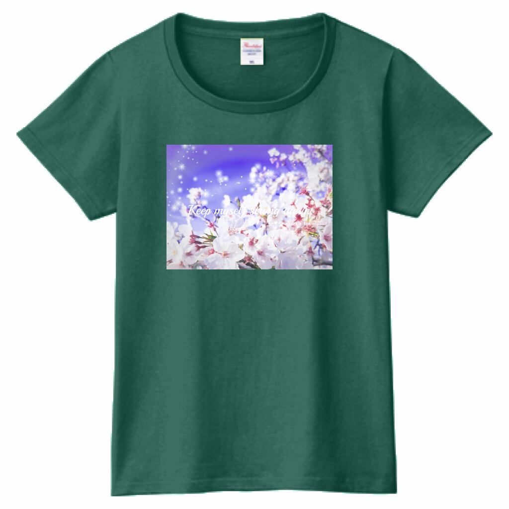 キラキラBeautiful Cherry blossom✵੯•`໒♥ヘビーウェイトTシャツ☁Ladies〔Printstar✵੯•`໒♥Ivy green