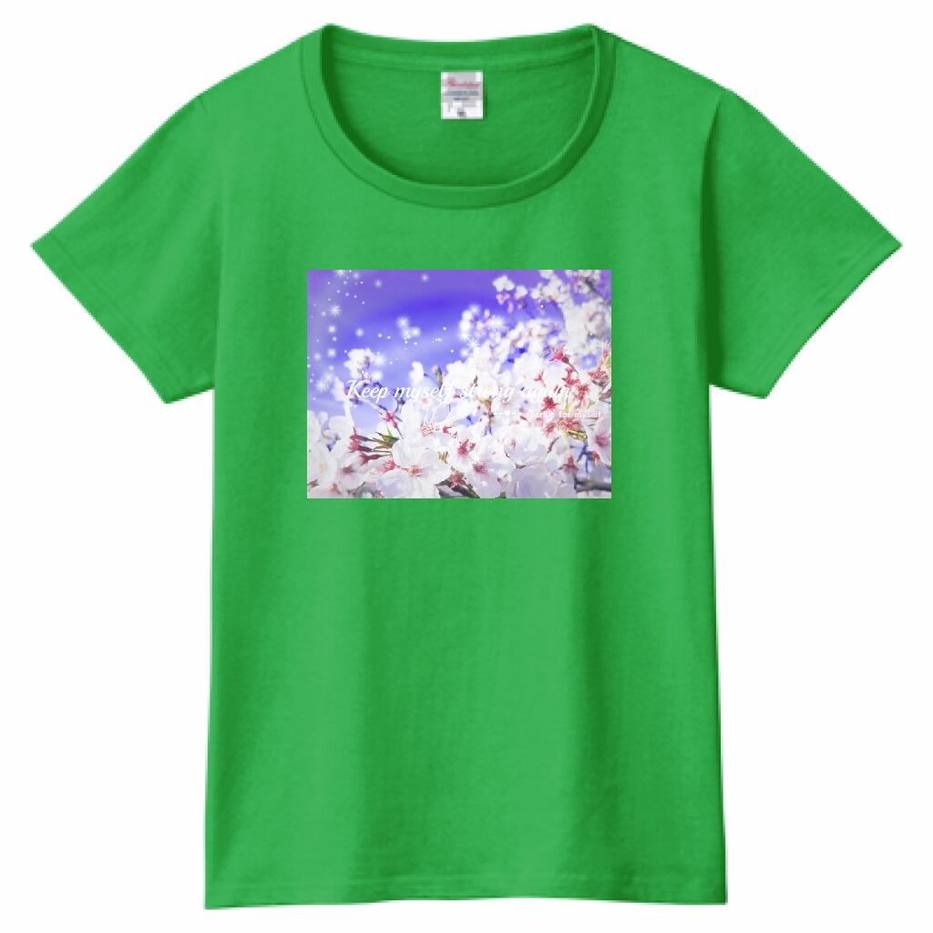 キラキラBeautiful Cherry blossom✵੯•`໒♥ヘビーウェイトTシャツ☁Ladies〔Printstar✵੯•`໒♥Bright green