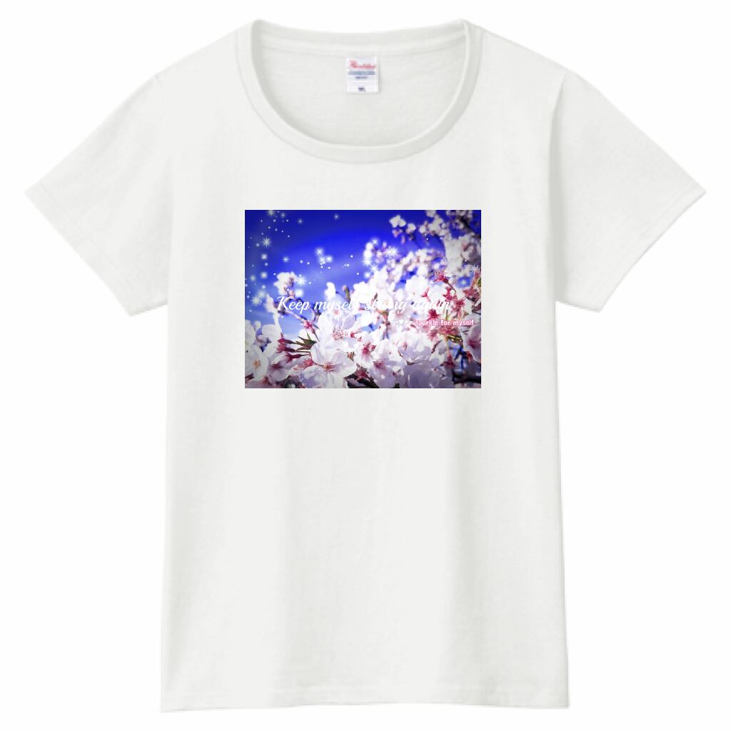 [Dark]♠キラキラBeautiful Cherry blossom✵੯•`໒♥ヘビーウェイトTシャツ☁Ladies〔Printstar✵੯•`໒♥White