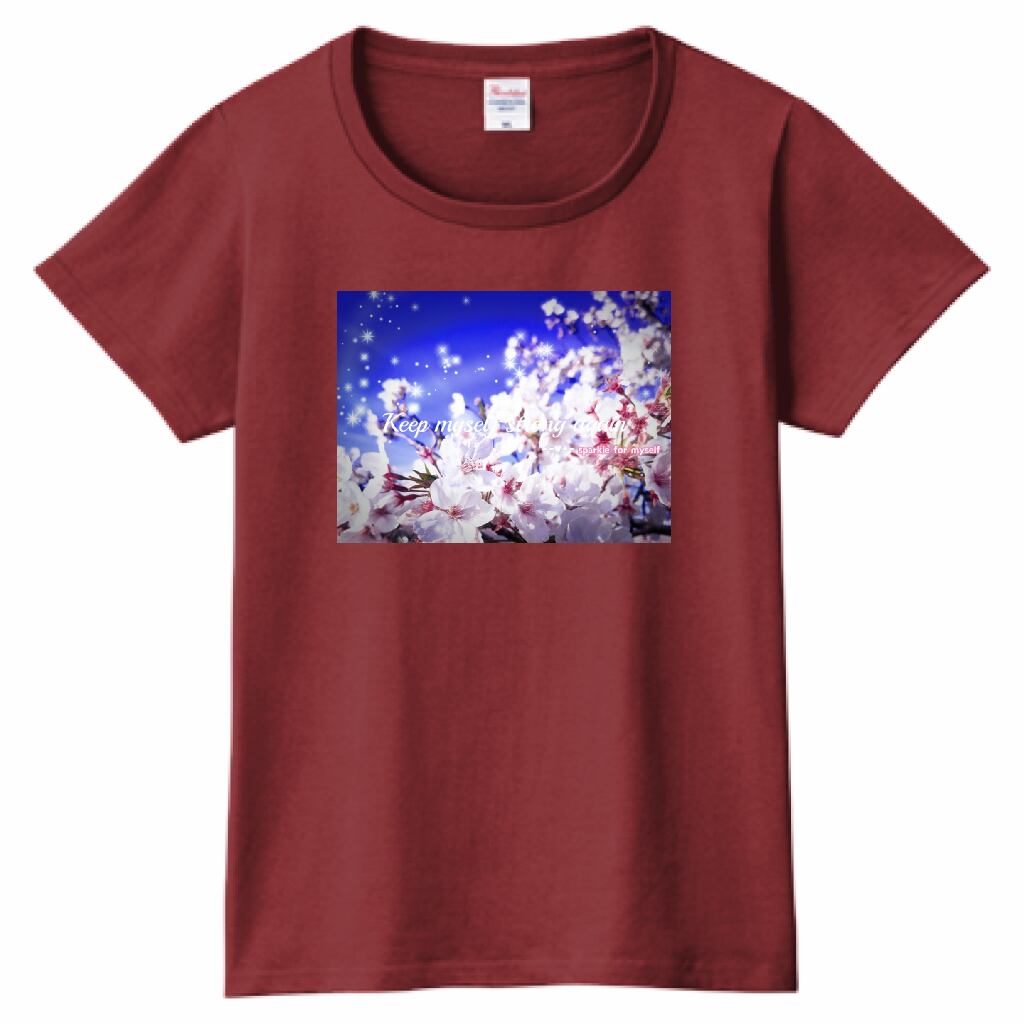 [Dark]♠キラキラBeautiful Cherry blossom✵੯•`໒♥ヘビーウェイトTシャツ☁Ladies〔Printstar✵੯•`໒♥Burgundy