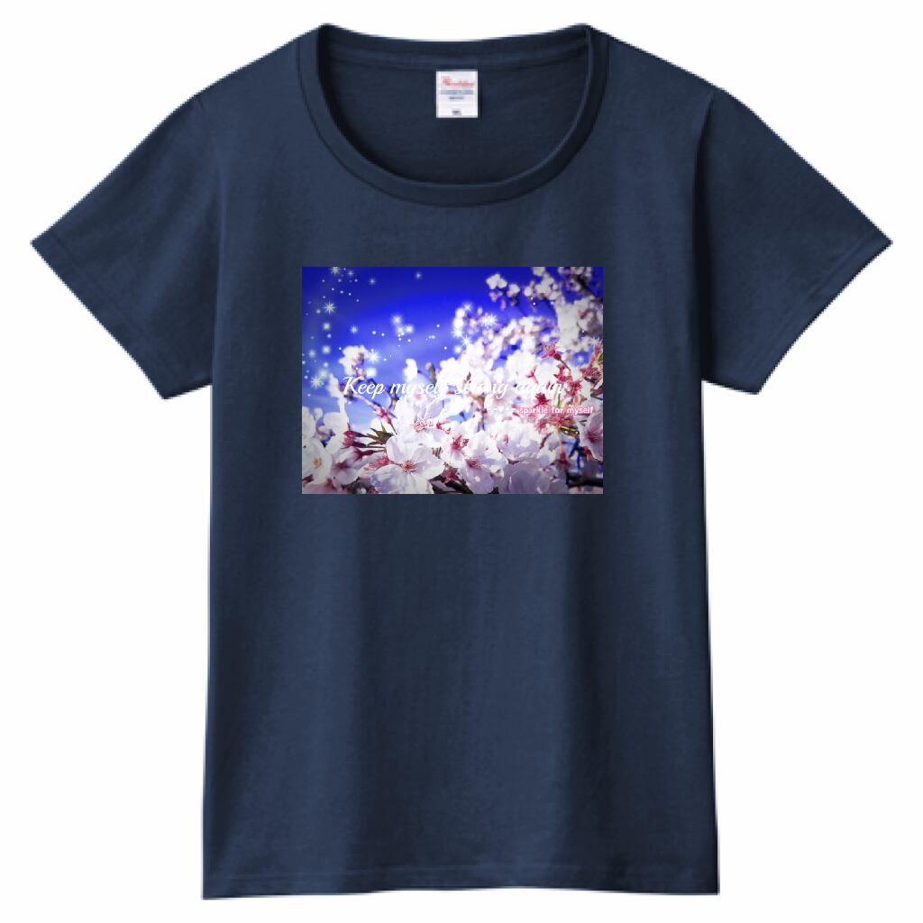 [Dark]♠キラキラBeautiful Cherry blossom✵੯•`໒♥ヘビーウェイトTシャツ☁Ladies〔Printstar✵੯•`໒♥Metro blue