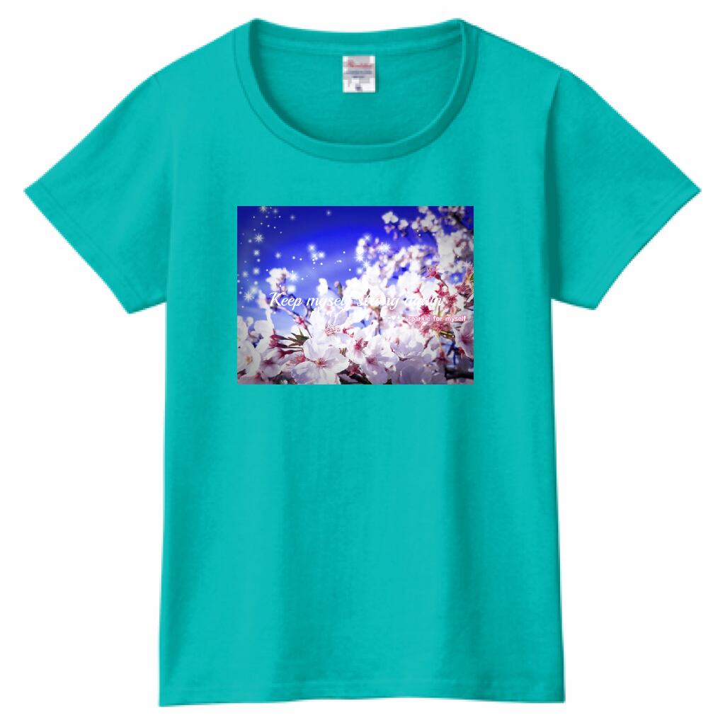[Dark]♠キラキラBeautiful Cherry blossom✵੯•`໒♥ヘビーウェイトTシャツ☁Ladies〔Printstar✵੯•`໒♥Mint